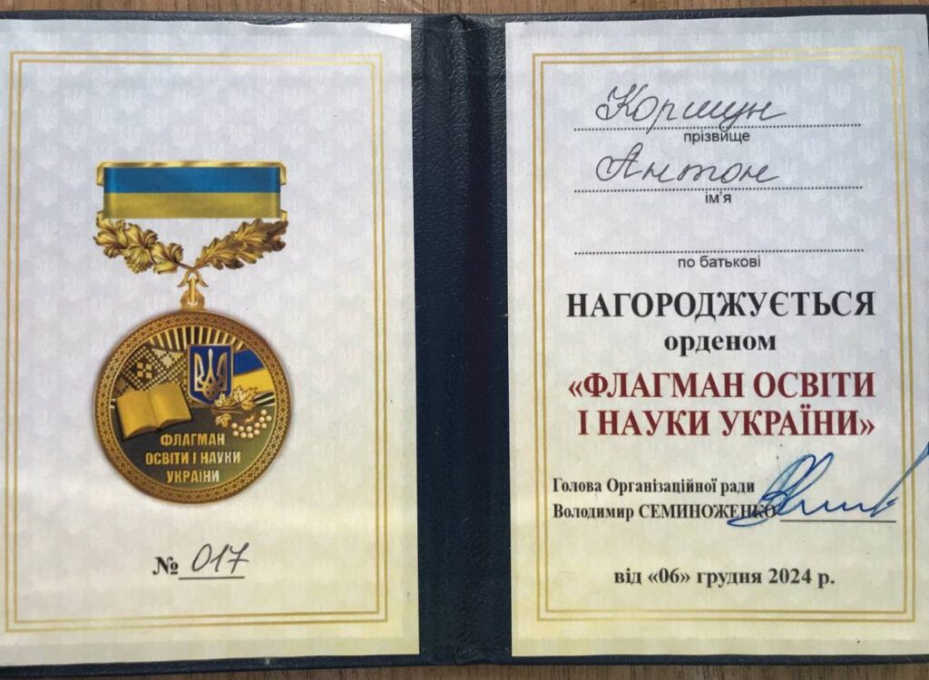 ВГО «Союз експертів України» вітає свого члена — Антона КОРШУНА з отриманням почесної нагороди «Флагман освіти і науки України»!