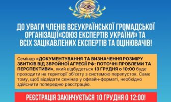 У зв’язку з погіршенням безпекової ситуації в Києві, семінар на тему: «Документування та визначення розміру…