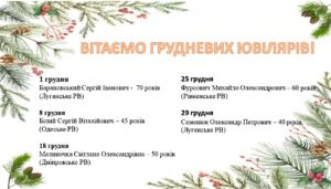Новини Вітаємо грудневих ювілярів 01.12.2025 Коментарів немає Поділитися Tweet Google+ Pinterest LinkedIn Tumblr Email + Поділитися. Twitter Facebook Google+ Pinterest LinkedIn Tumblr Email