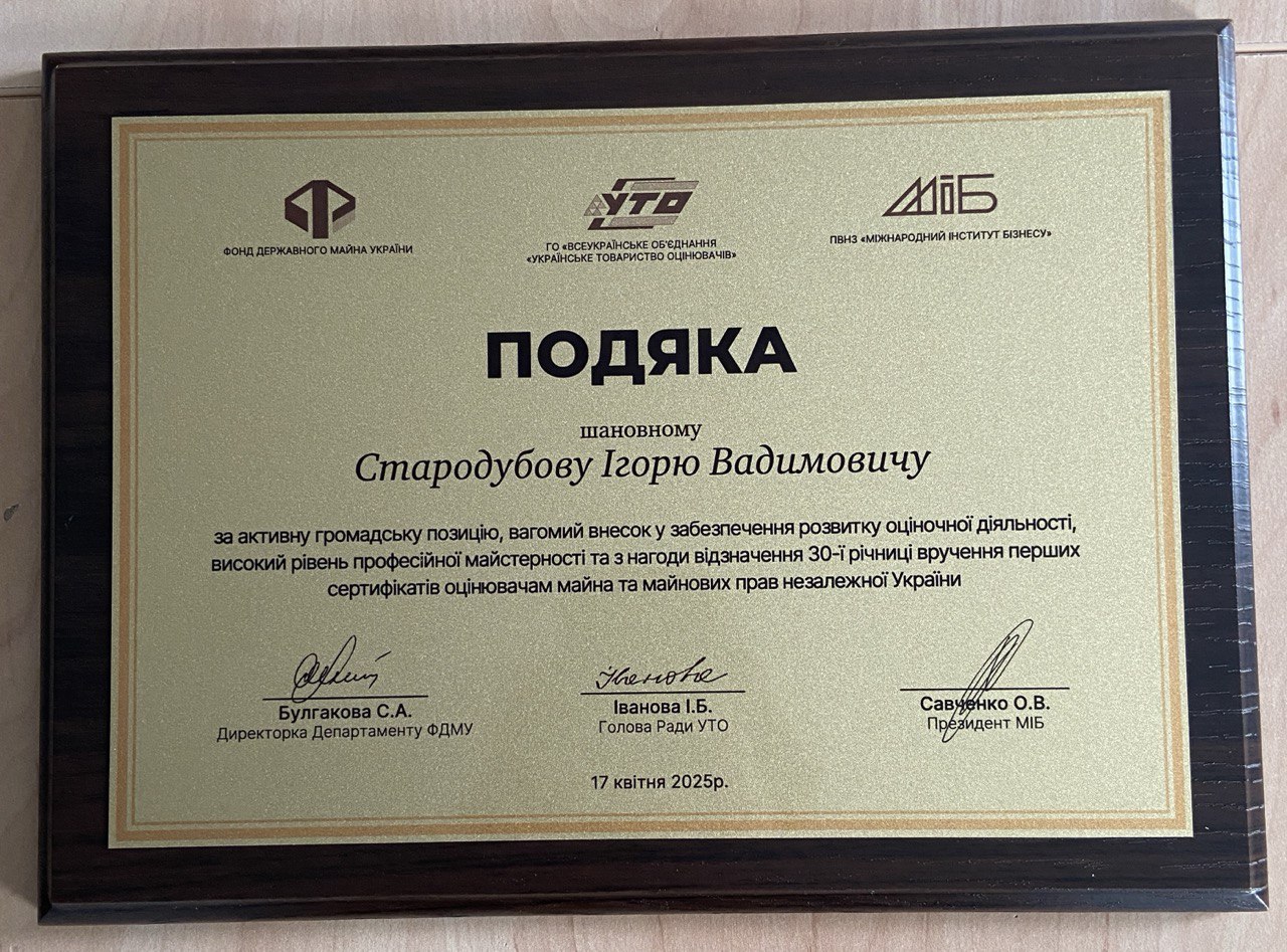17 квітня 2025 року в Міжнародному інституті бізнесу відбулася науково-практична конференція, присвячена 30-річчю вручення перших сертифікатів оцінювачам майна та майнових прав в Україні. Організаторами виступили ПВНЗ «МІБ», ГО «Всеукраїнське об’єднання «Українське товариство оцінювачів»», Фонд державного майна України за участі всіх СРО.