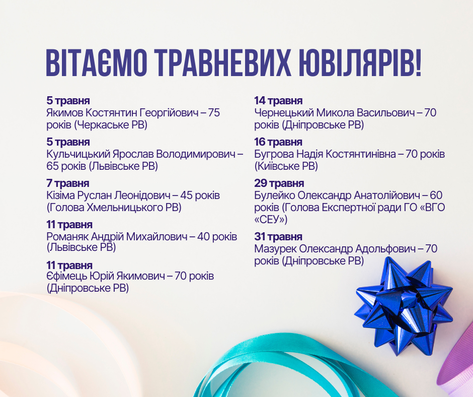 Новини Вітаємо травневих ювілярів! 01.05.2025 Коментарів немає Поділитися Tweet Google+ Pinterest LinkedIn Tumblr Email + Поділитися. Twitter Facebook Google+ Pinterest LinkedIn Tumblr Email